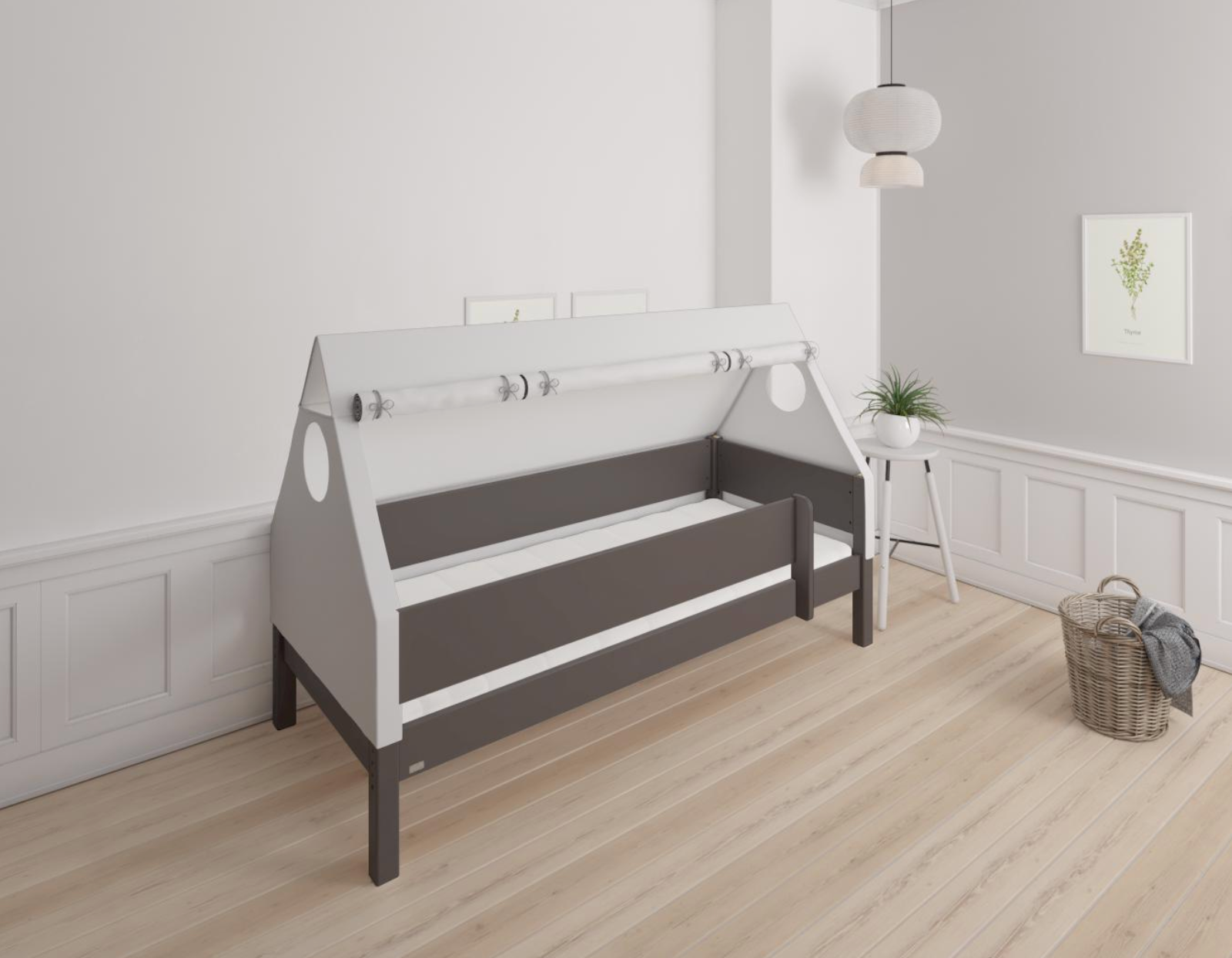 Fulla børne husseng med bøgestel og bomuldshimmel - 90*160cm - Anthracite - 2