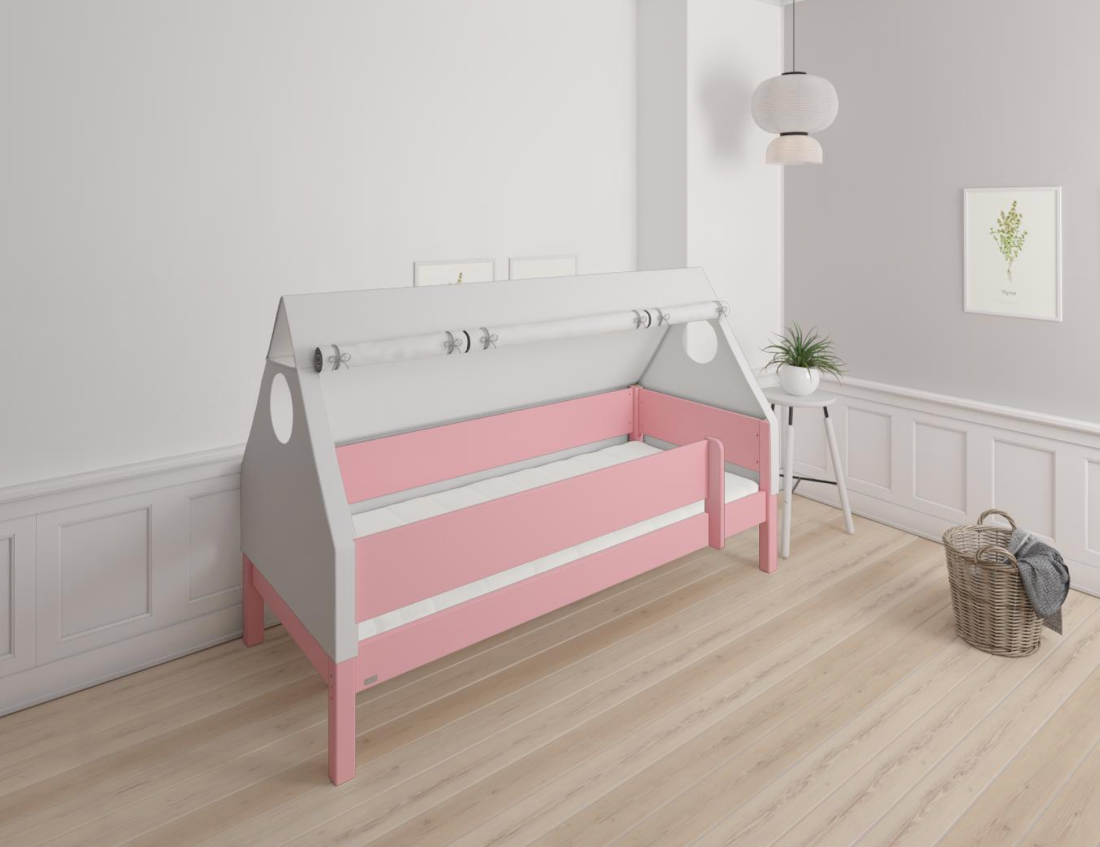 Fulla børne husseng med bøgestel og bomuldshimmel - 90*160cm - Pink - 32