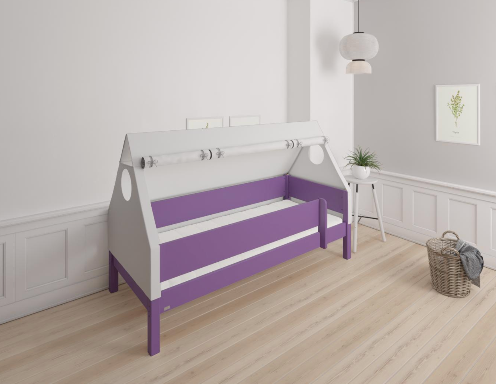 Fulla børne husseng med bøgestel og bomuldshimmel - 90*160cm - Purple - 31