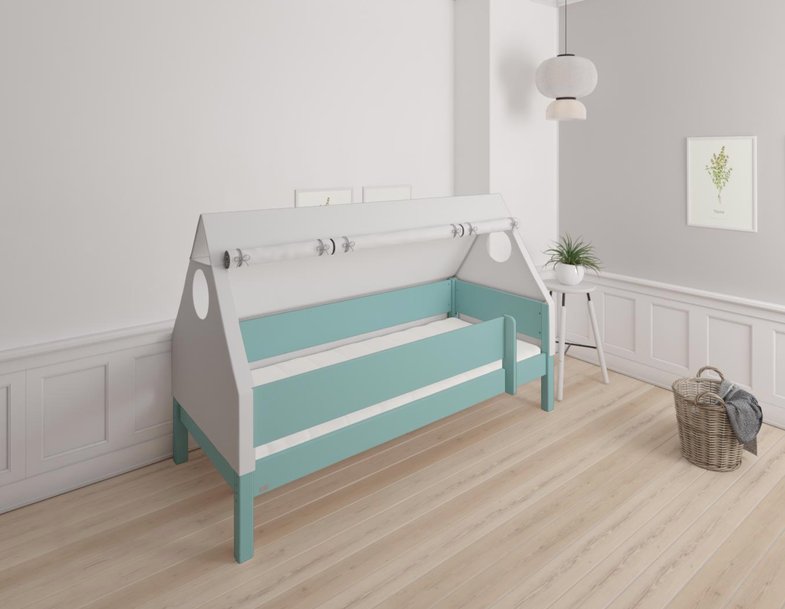 Fulla børne husseng med bøgestel og bomuldshimmel - 90*160cm - Mint blue - 42