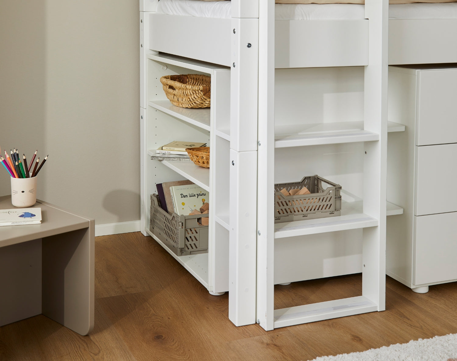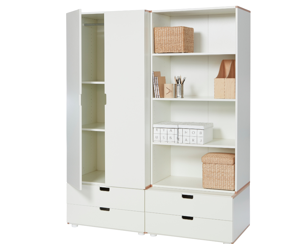 Vores opbevaringsløsninger er udviklet til at følge barnet gennem mange år. En garderobe kan udvides i takt med, at behovene ændrer sig, og en kommode kan bruges på flere måder – fra pusleplads i de tidlige år til klassisk opbevaring senere i barndommen.