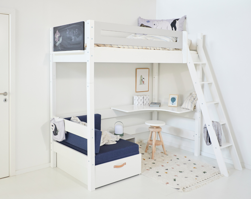 Sengen er en del af et byggesystem. Det betyder, at du kan udvide og ombygge sengen efter dine behov, så dit barn kun har brug for én seng resten af barnets liv. Sengen kan fx bygges ind i køjeseng, enkeltseng og meget mere.
