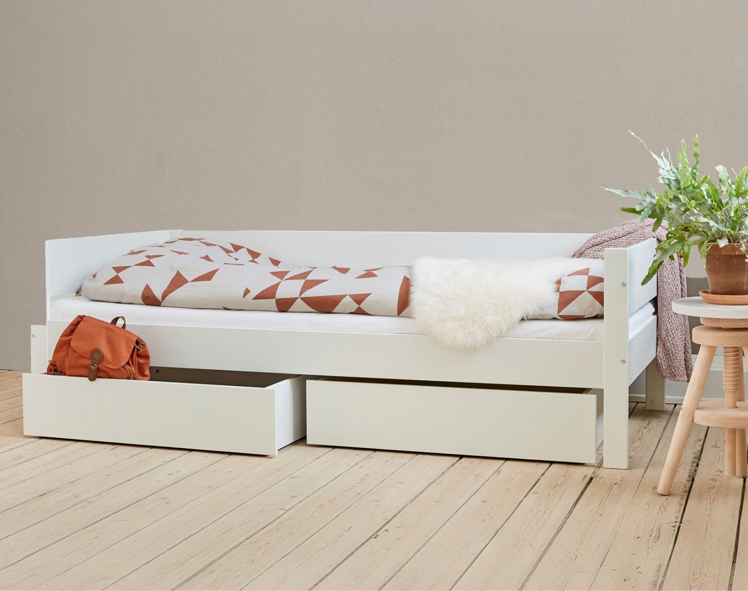 Sengen er skabt til at følge med dit barns udvikling. Start simpelt – og byg videre, når tiden er inde. Det smarte system gør det let for jer selv at omdanne sengen til eksempelvis en halvhøj seng eller køjeseng – og tilbage igen, uden besvær.