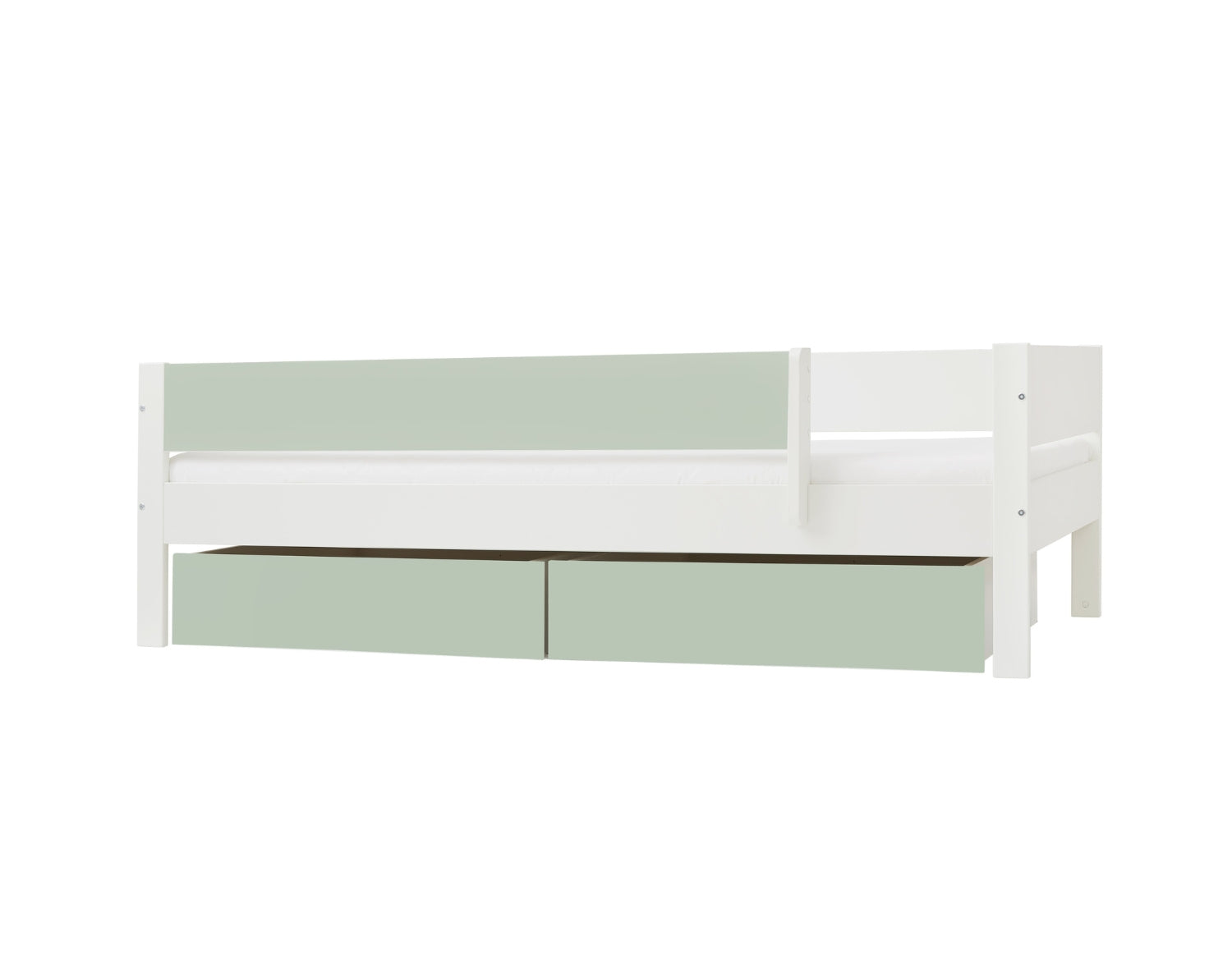 Standard farven er hvid med mulighed for forreste sengehest og skuffer i farvene Azur mint -22, Dusty rose -25, Sunny yellow -44 or Light green -54.