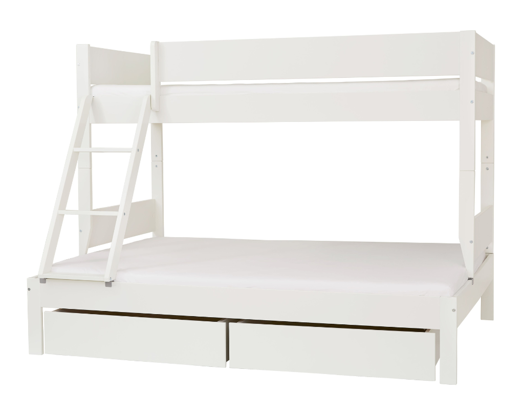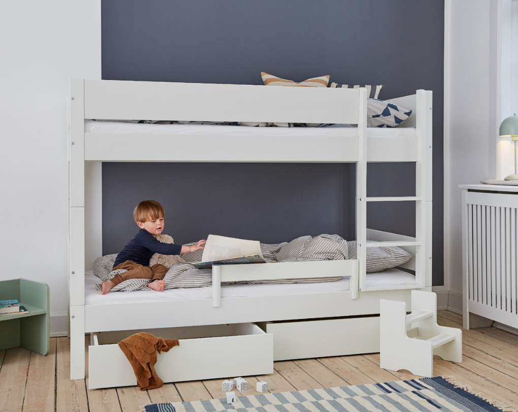 Med en Huxie køjeseng behøver du ikke bekymre dig om hverken sikkerhed eller holdbarhed. Sengene er testet og godkendt af Teknologisk Institut efter gældende europæiske standarder for både sikkerhed, materialer og overflader. Sengebenene er lavet i massivt bøgetræ malet med en miljøvenlig og uskadelig hvid maling. Sengesider og sengeheste er i 19 mm malet MDF.