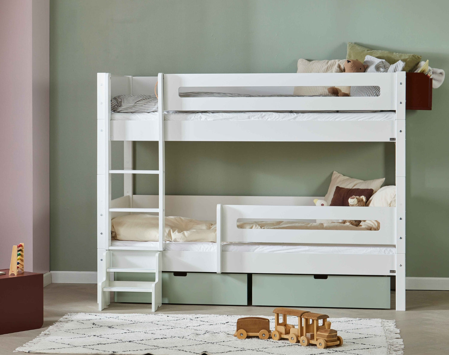 Alle vores køjesenge er fremstillet i stærke, miljøvenlige materialer uden skadelige stoffer. Med sikkerhedsstiger, solide sengerammer og stabile konstruktioner er hver detalje gennemtænkt for at gøre sengen tryg i hverdagen. Alle senge er desuden sikkerhedscertificeret hos DTI, så du kan have fuld ro i sindet.