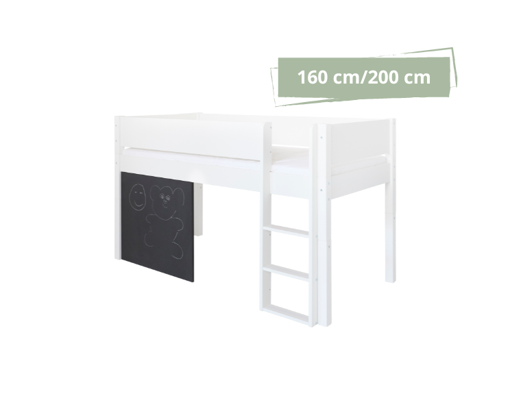Den forhøjede konstruktion skaber også ekstra plads under sengen, som kan udnyttes på forskellige måder. Her kan der indrettes opbevaring, en lille arbejdsplads eller en hyggelig hule med en sofamadras. Med vores legeforhæng og tilbehør kan sengen desuden forvandles til et inspirerende sted for leg og fantasi.