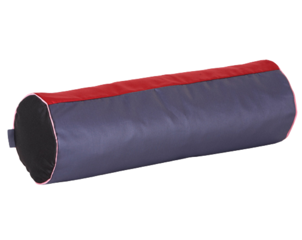 Rund, aflang pude - koralrød, lilla og grå Betrækket kan vaskes på 30º