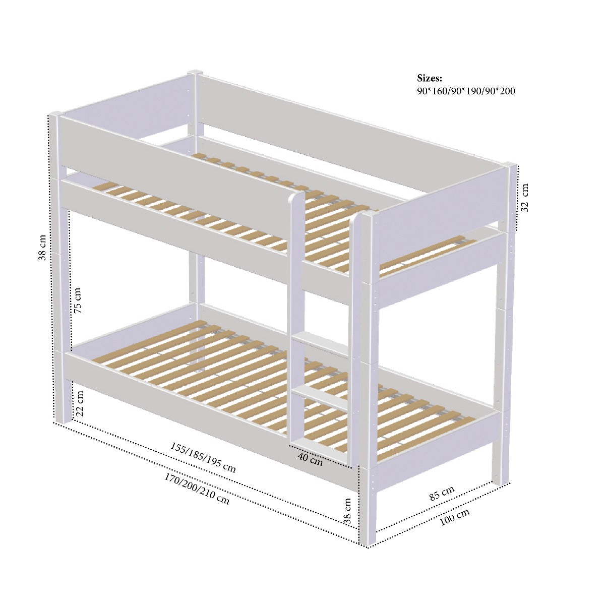 Dette sæt inkluderer en seng uden lamelbund (10000), Beslagspakke til køjeseng (5110), lamelbund (10910).