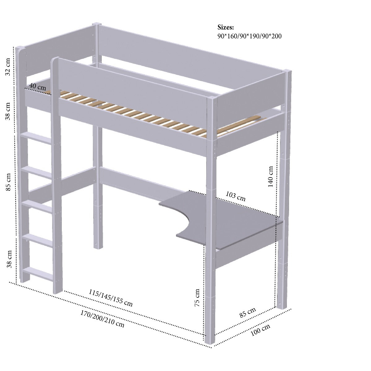 Ombygningskit - halvhøjseng til højseng 90*200 cm.