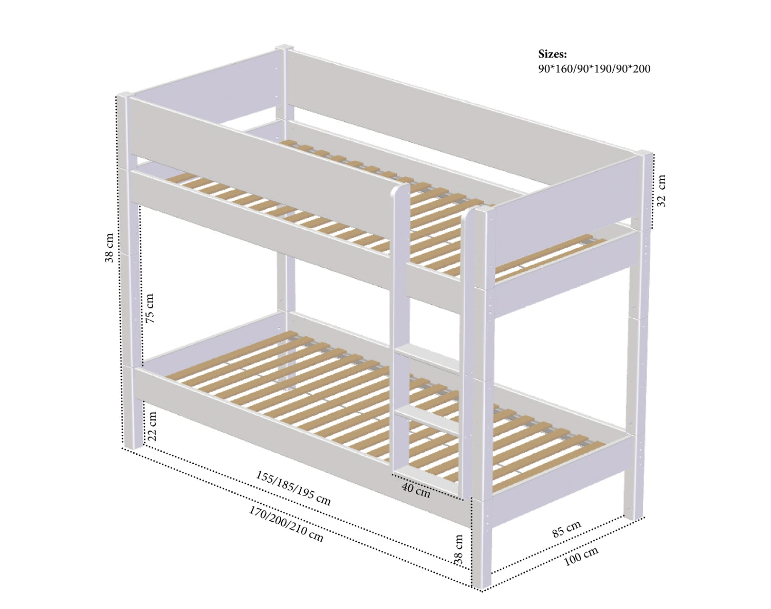 Stigen er designet med fokus på stabilitet, sikkerhed og komfort. De brede trin gør det nemt og trygt for børn at klatre op og ned – også om natten. Stigen kan monteres i enten højre eller venstre side, så den passer til netop dit værelse. Afstanden mellem stigetrinene er lavet således, der ikke er klemningsrisiko.