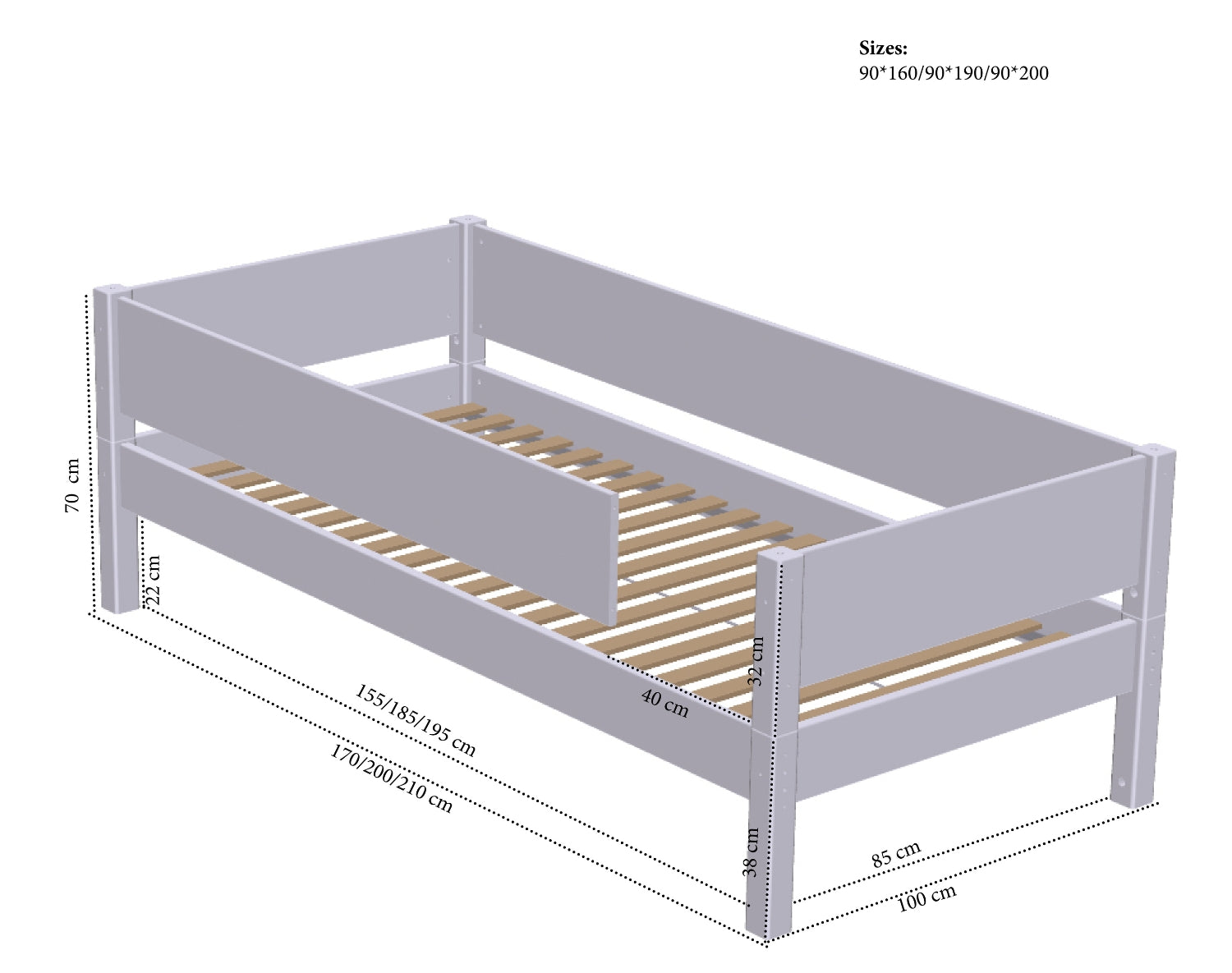 Ønsker du en større seng, kan modellen også købes i bredderne 120 og 140 cm. Denne kombination kan naturligvis også altid udvides til vores brede modeller, hvis du ønsker en 90 cm seng fra start.