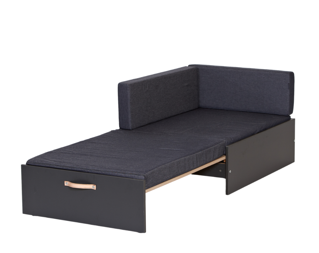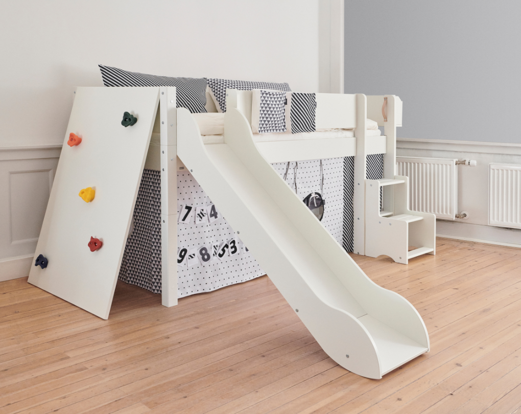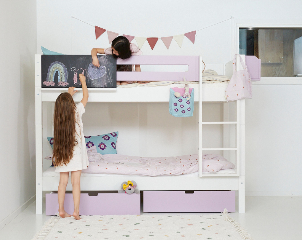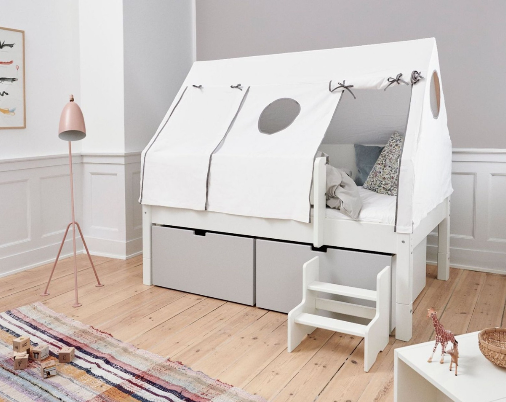 Det særlige ved tilbehøret er, at det gør møblerne fleksible og giver dem flere funktioner. En seng kan udvides med en skuffe, omdannes til en hyggelig hule eller gøres mere tryg med en sengehest – og på den måde følge barnet gennem forskellige faser.