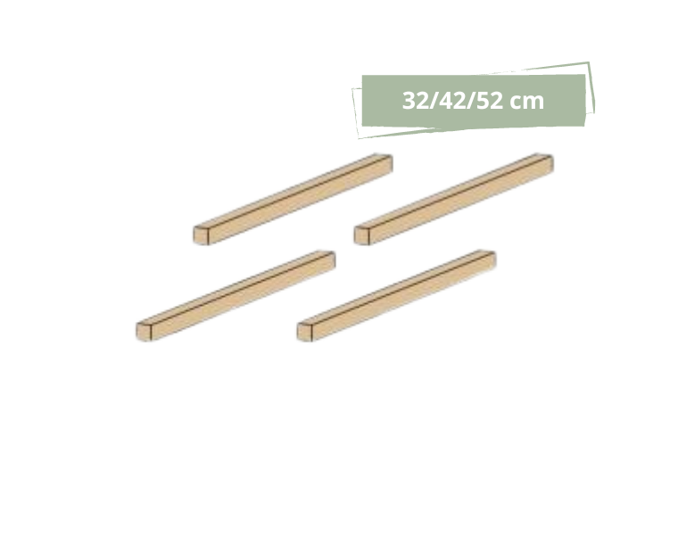 Alt tilbehør er produceret i Danmark i robuste materialer uden skadelige stoffer og med samme fokus på kvalitet og æstetik som resten af kollektionen. Med et bredt udvalg af smukke farver og naturtræ kan du skabe løsninger, der både er funktionelle og tidløse.