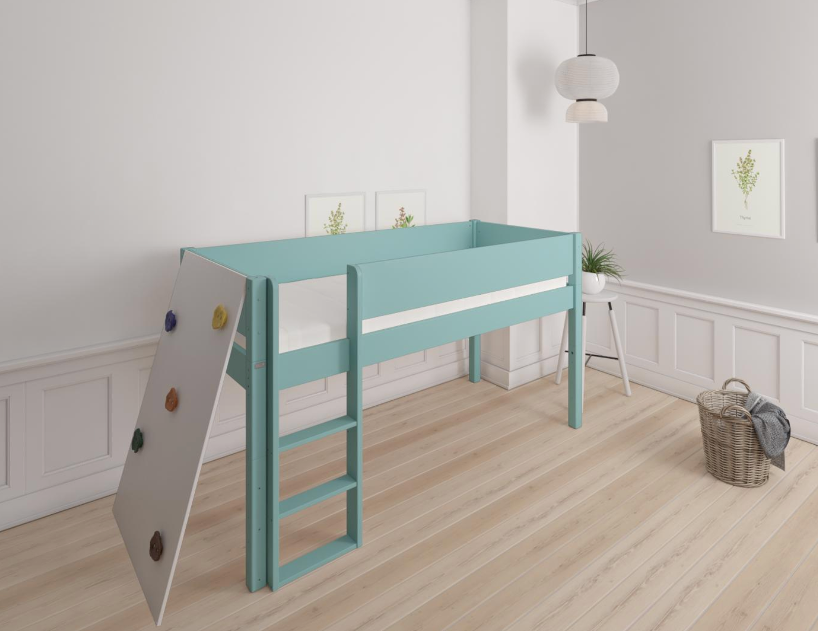 Borr half-height children's bed with climbing wall - height bed with climbing wall - 90*160cm - Mint blue - 42