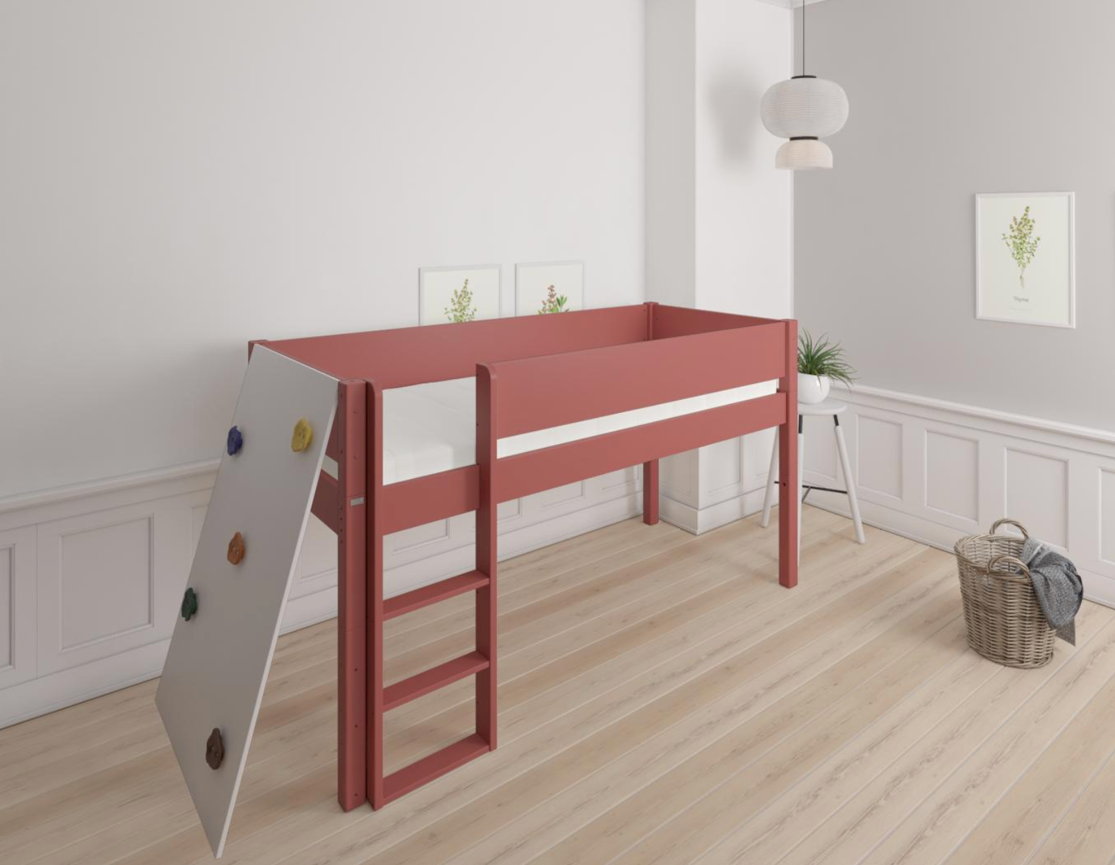 Borr half-height children's bed with climbing wall - height bed with climbing wall - 90*160cm - Rusty red - 35