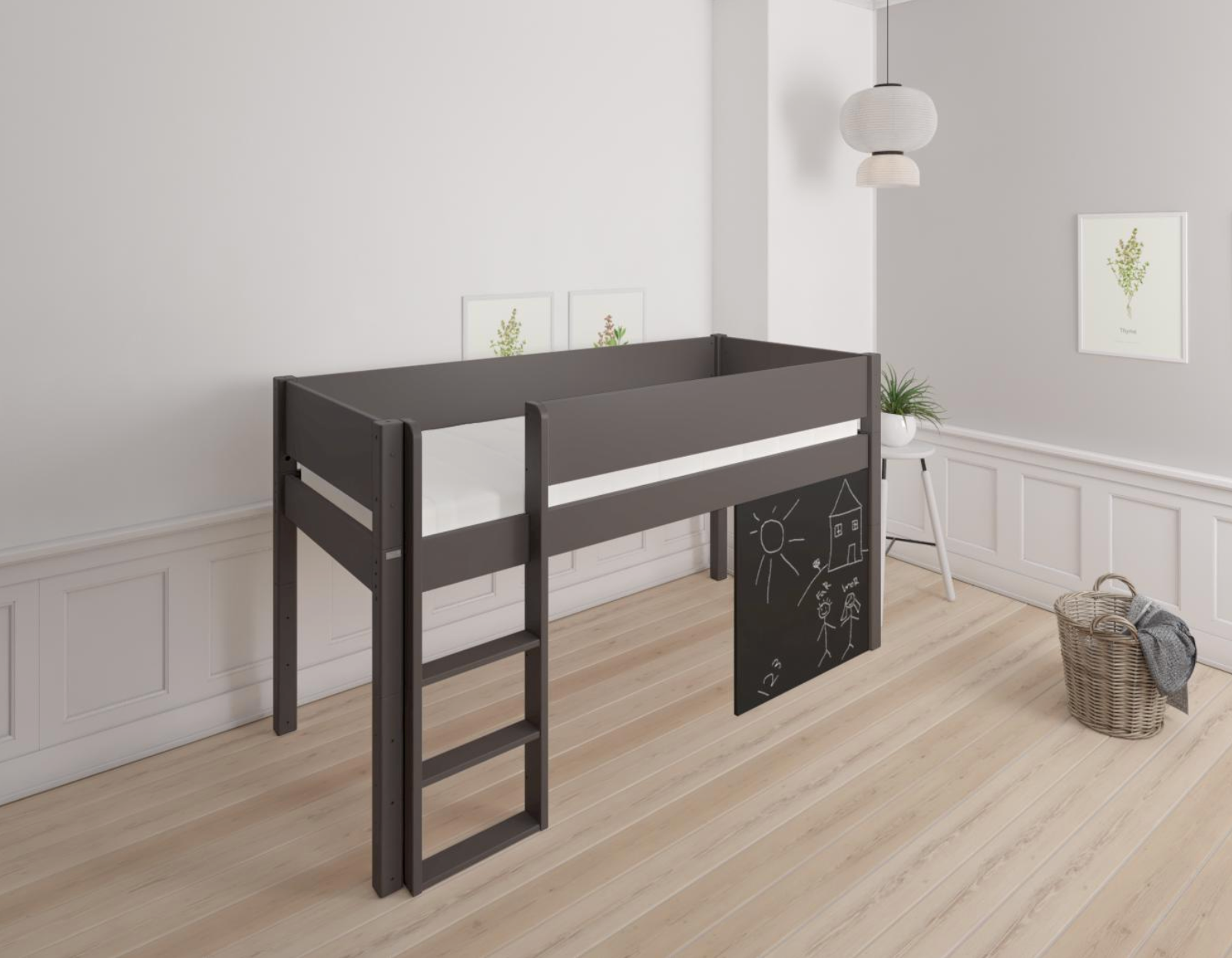 Dea half-height children's bed with chalkboard - 90*160cm - Anthracite - 2