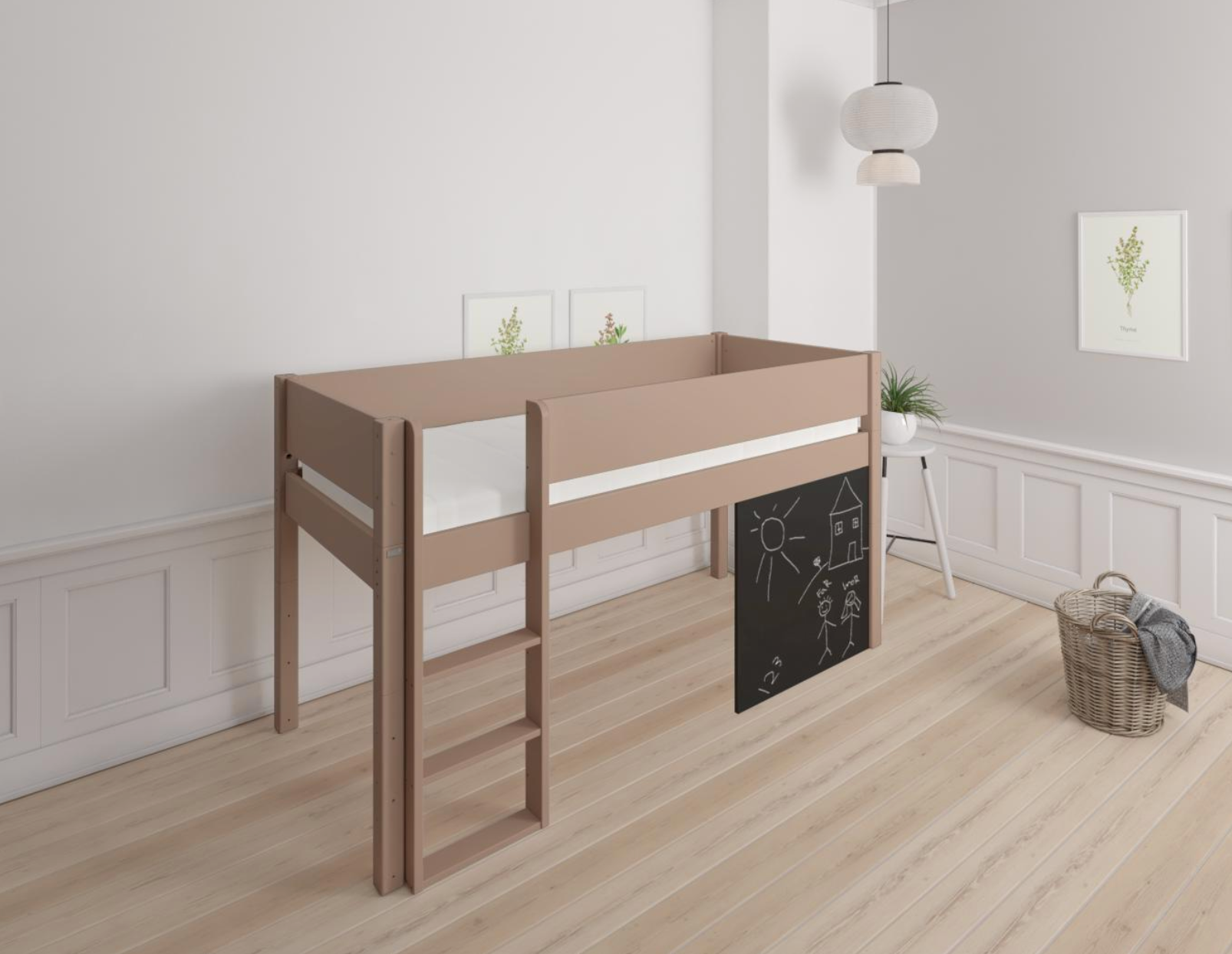 Dea half-height children's bed with chalkboard - 90*160cm - Cafélatte - 55