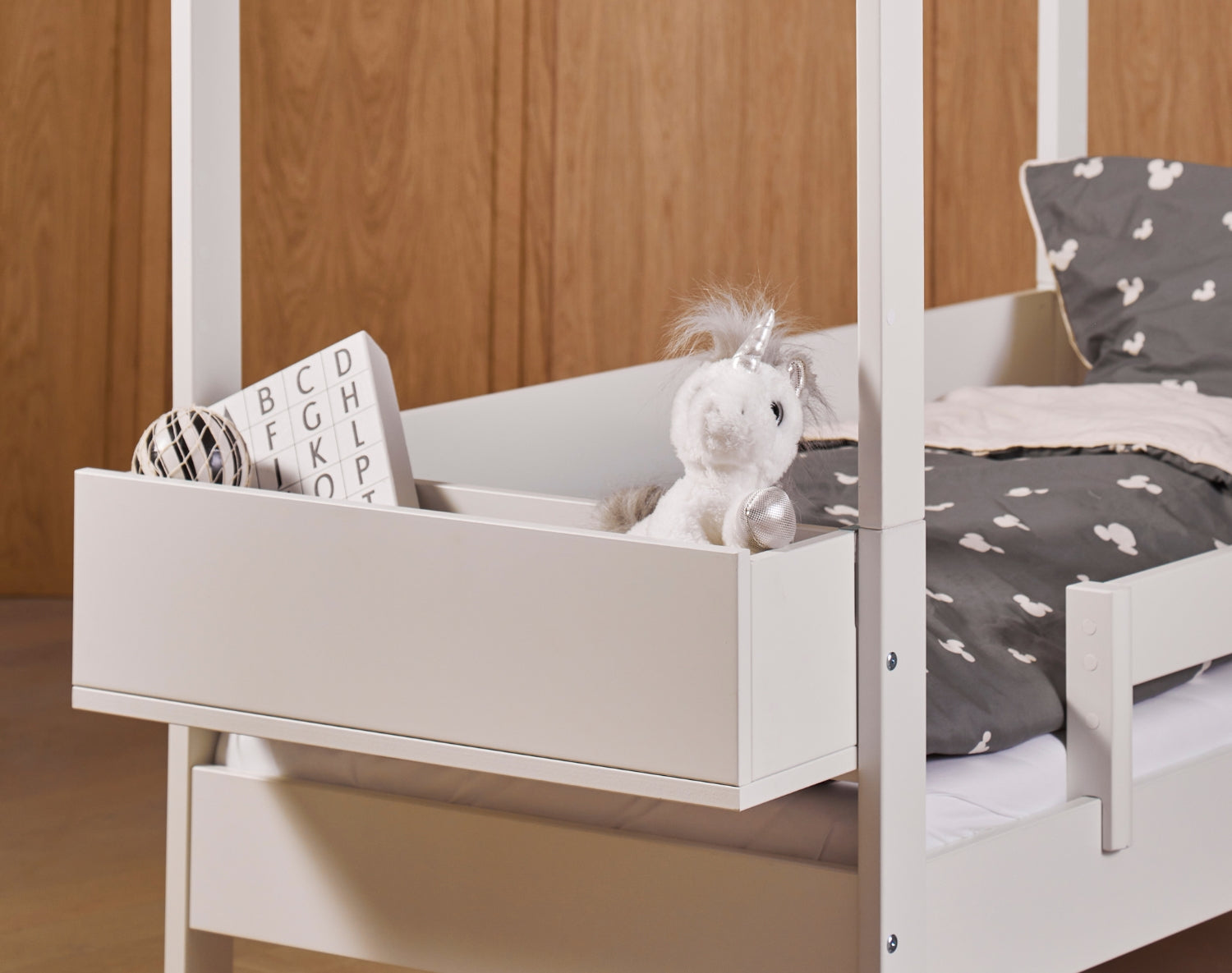 Huxie bogkasse. Disse bogkasser, der er designet specielt til at kunne sættes på din Huxie-seng, og er perfekt opbevaringsløsning til fx bøger, bamser eller andre ting, man har brug for at have tæt på om natten.