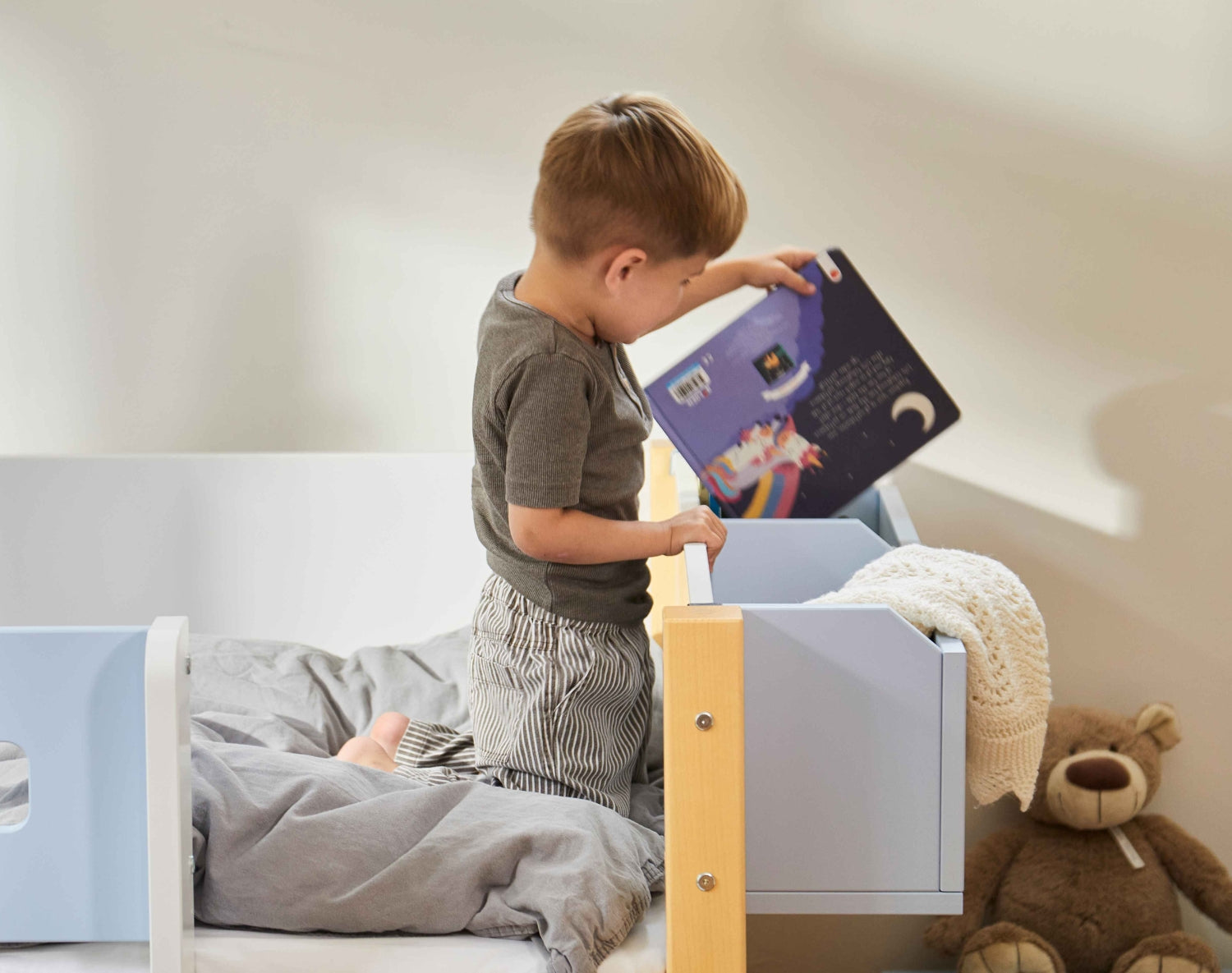 - Pay attention to the mattress height in relation to the bed rail/side – we note this clearly so that your child always sleeps safely.