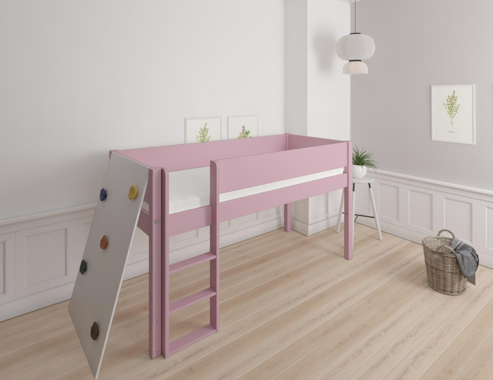 Borr half-height children's bed with climbing wall - height bed with climbing wall - 90*200cm - Dusty rose - 25