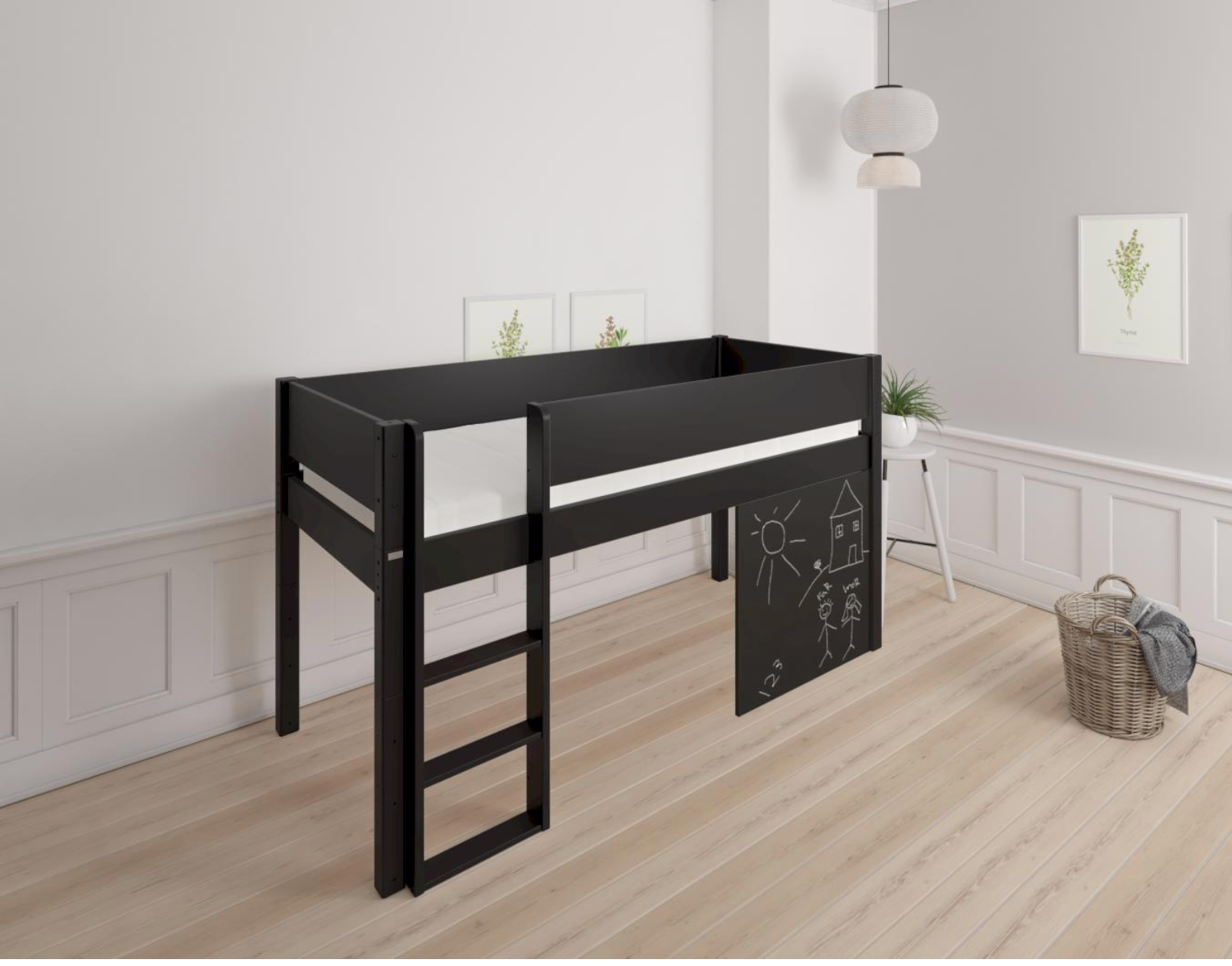 Dea half-height children's bed with chalkboard - 90*200cm - Black - 39