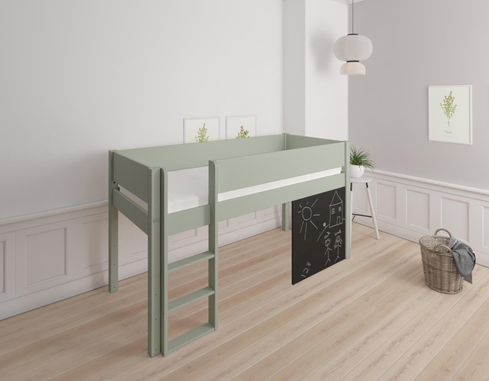 Dea half-height children's bed with chalkboard - 90*200cm - Light green - 54