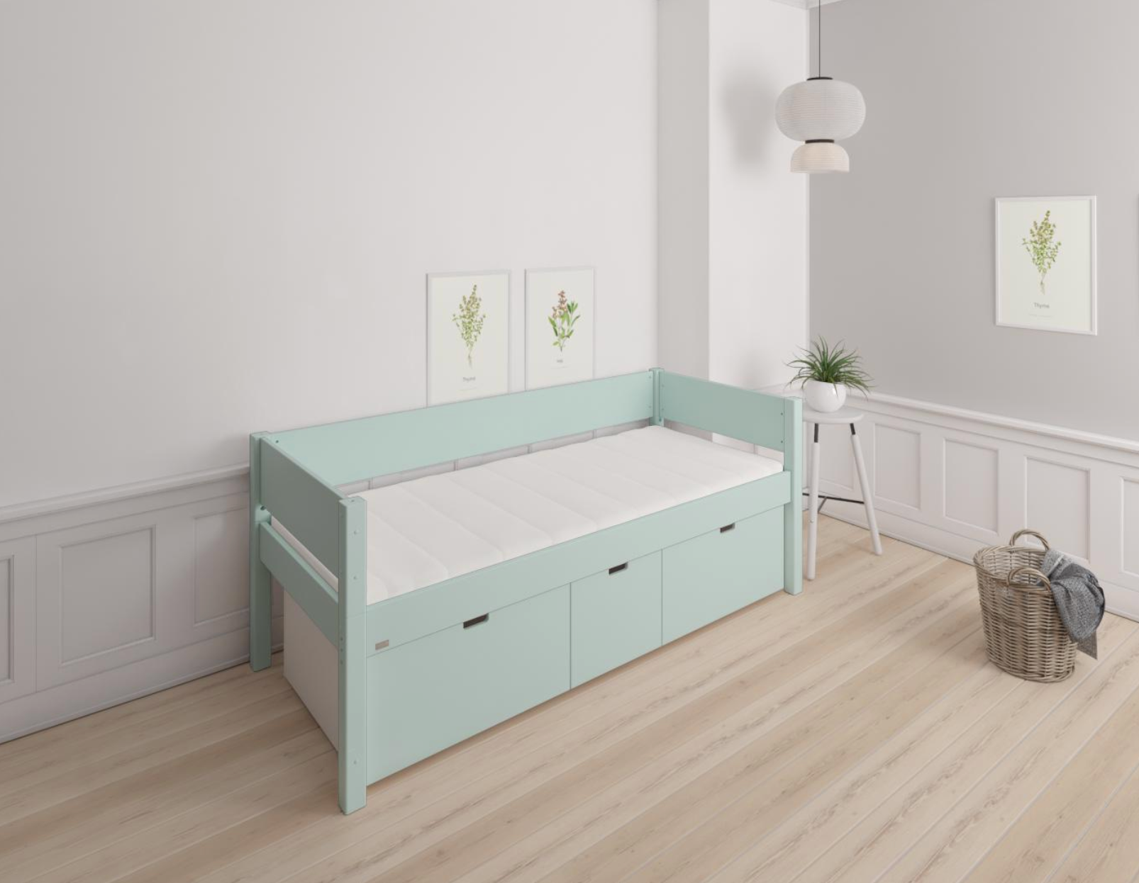 Nanna children's bed with high drawers - 90*160cm - Azur mint - 22