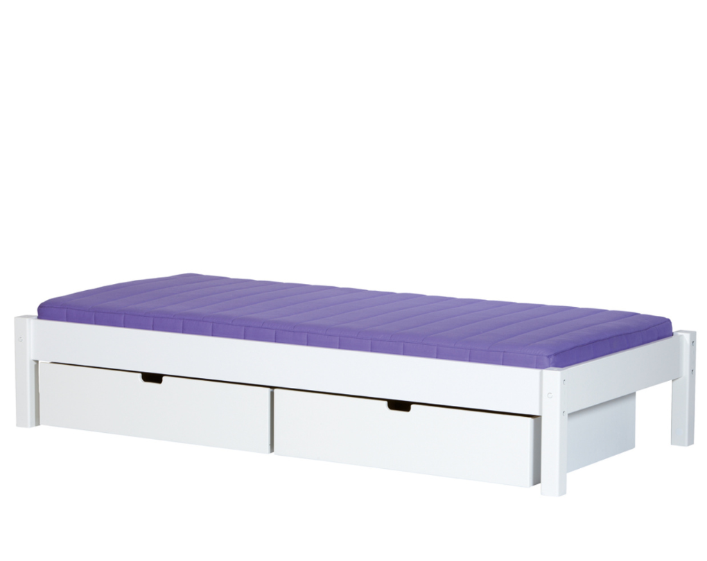 Wool children's bed with slatted base and 2 drawers. The two drawers are made with handles that are easy to hold for all ages. The drawers have plenty of space that can be used for storing toys or whatever needs to be hidden away. It's easy storage that doesn't take up space from the play area in the children's room.