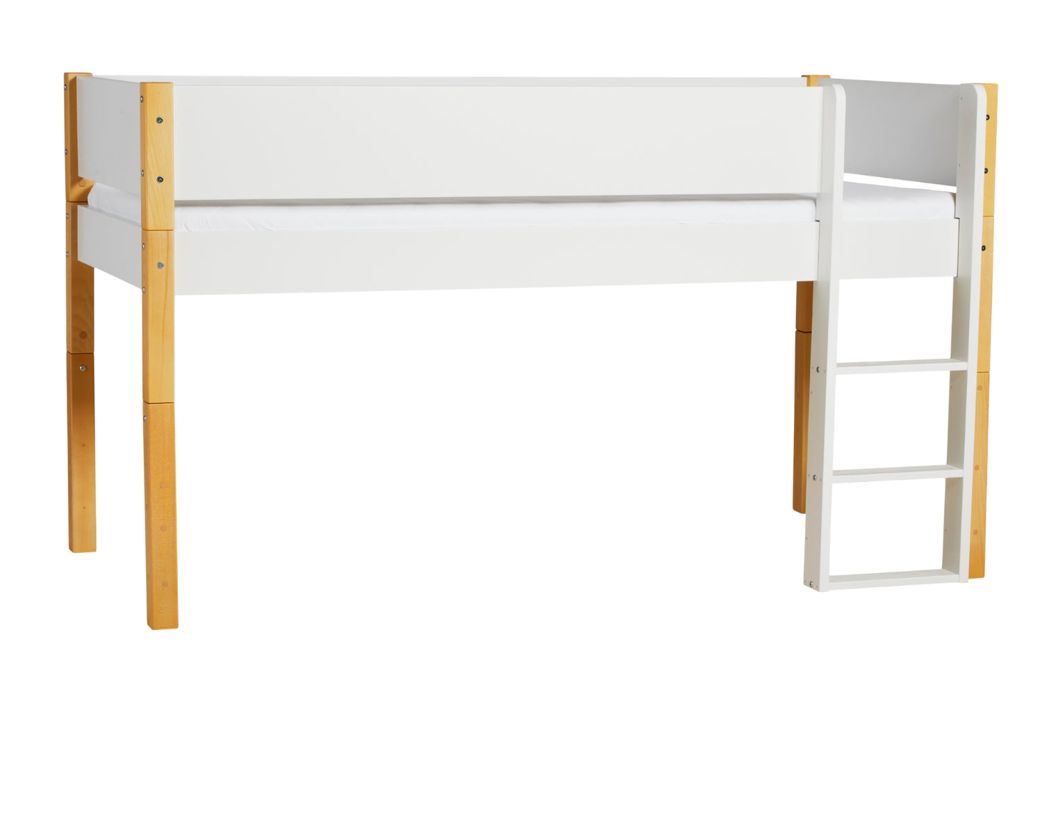 Frej fås i længderne 160 cm, 190 cm og 200 cm, og stigen kan monteres i både højre og venstre side, så den passer perfekt til jeres rum og hverdag. Som en del af vores fleksible modulopbyggede sengeunivers kan Frej vokse og ændre sig med barnet – fra halvhøj seng til højseng, køjeseng, enkeltseng med udtræksseng og meget mere.