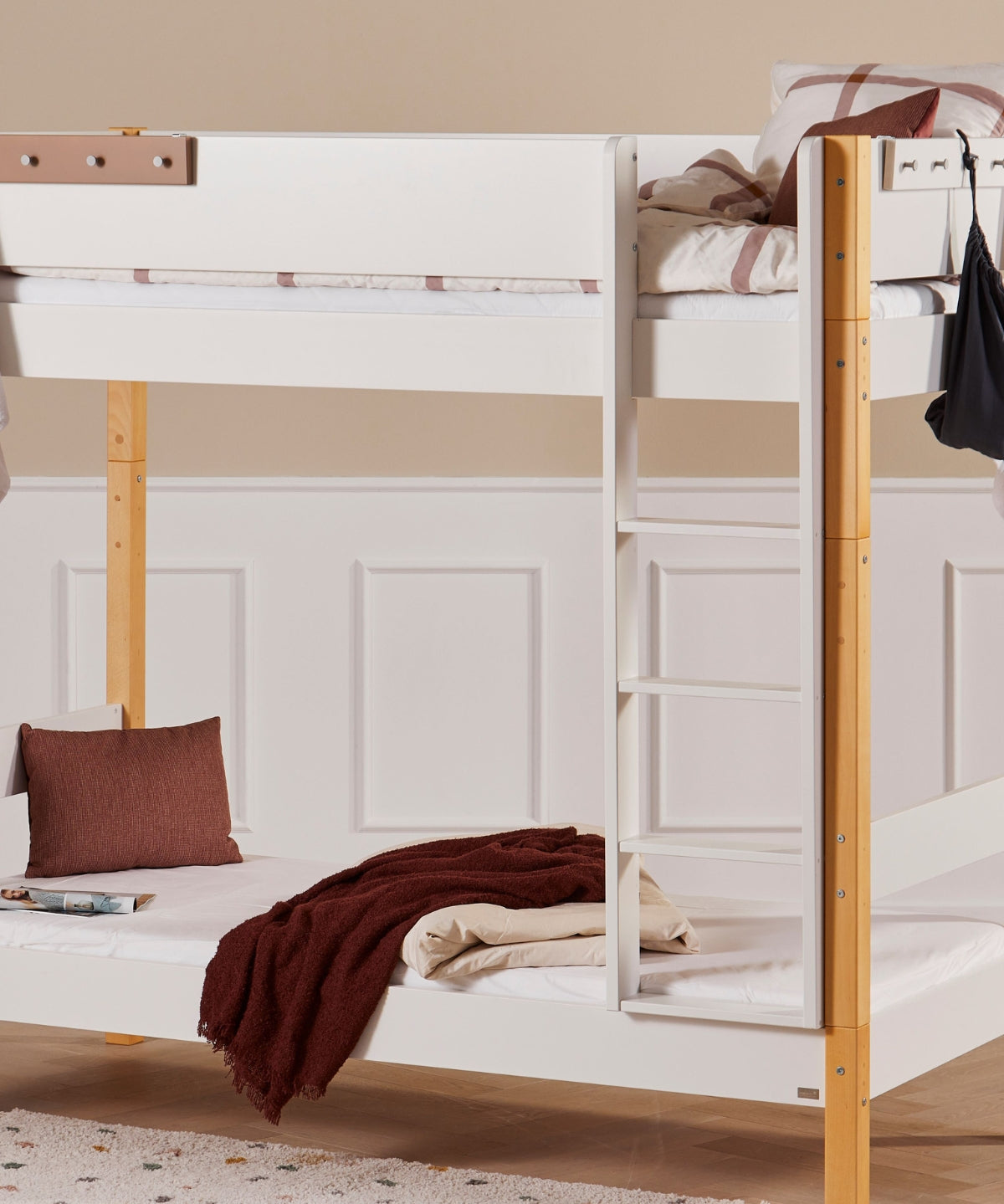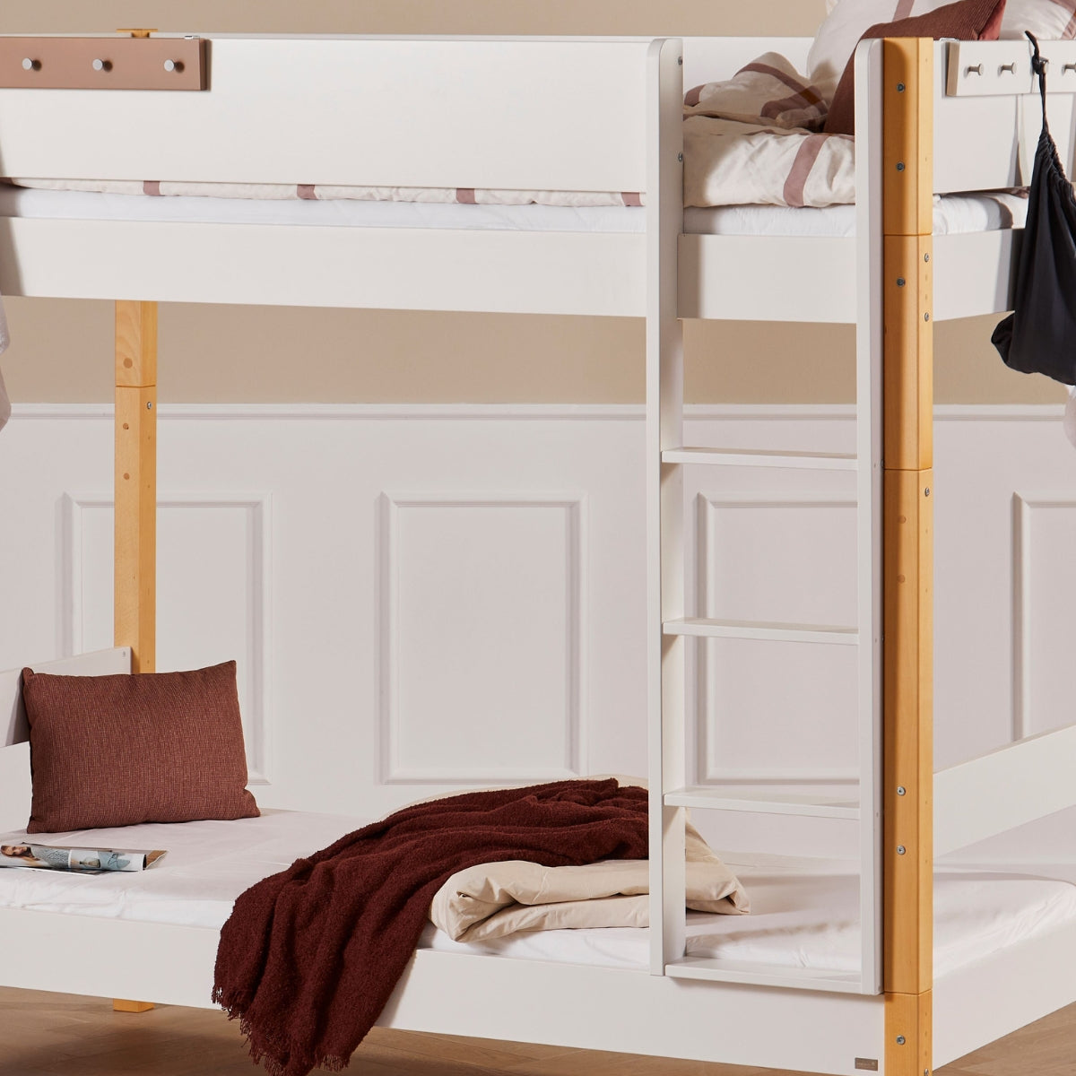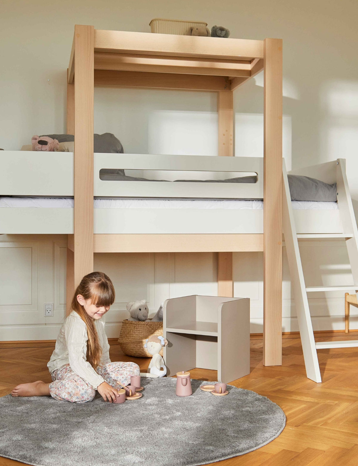 Med vores fleksible byggesystem kan sengen vokse med barnet – fra briks til juniorseng, halvhøj, køje eller højseng, og tilbage igen. Ét system, mange muligheder.
