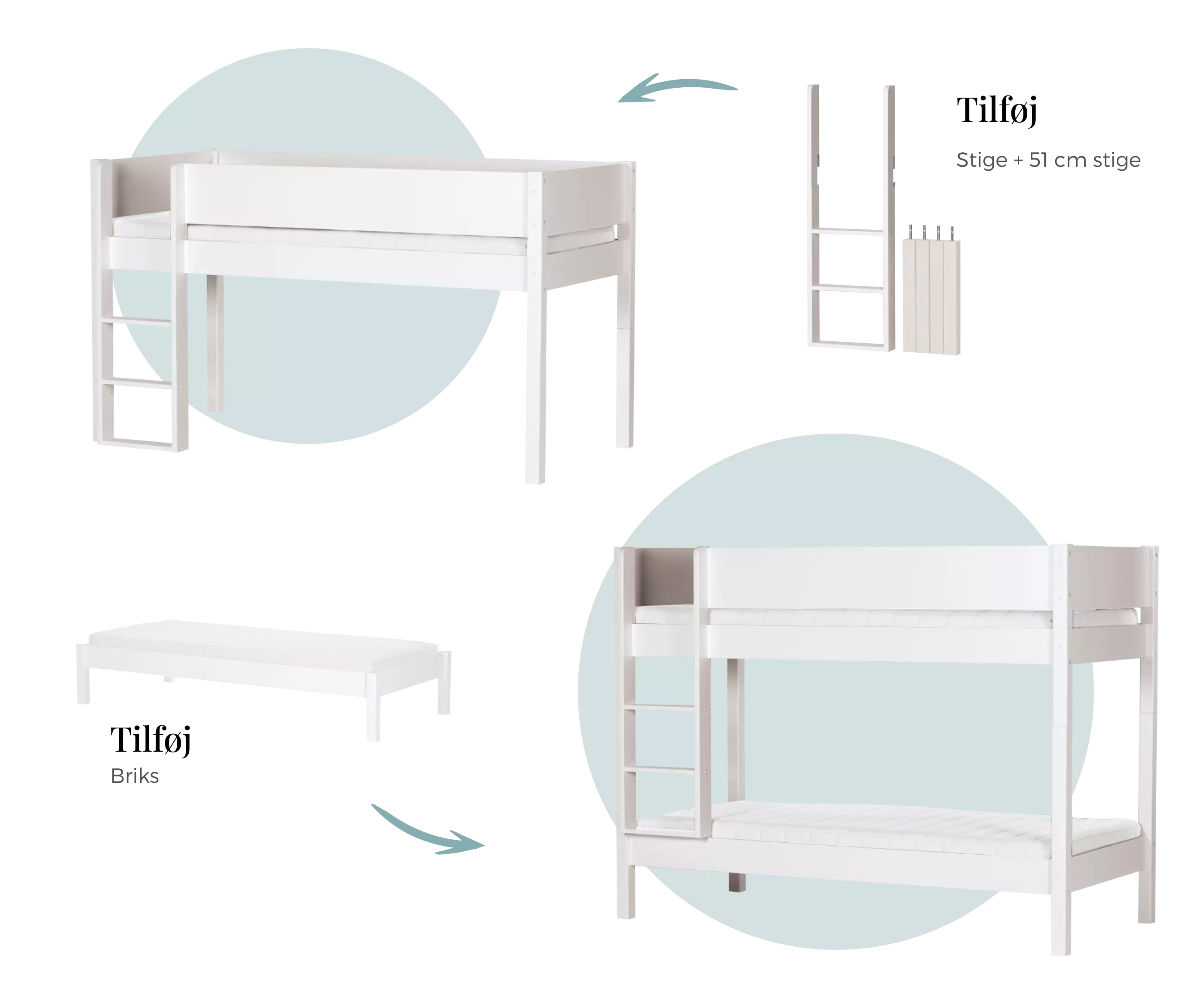 Mulighederne er mange med senge fra Manis-h. Derfor kan du også med denne seng ombygge til en køje-, halv- eller højseng. Der er helt op til dig.