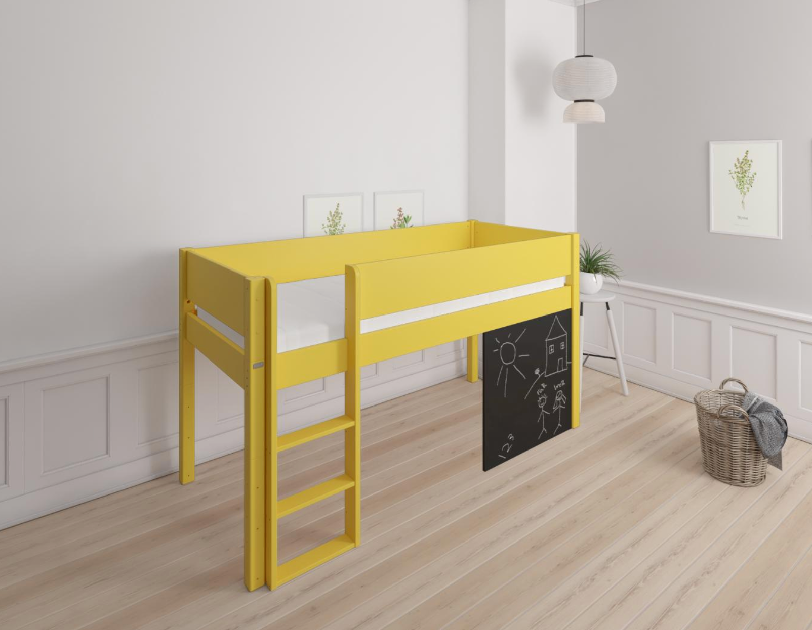 Dea halvhøj børneseng med tavle - height children's bed with chalkboard - 90*160cm - Curry yellow - 43