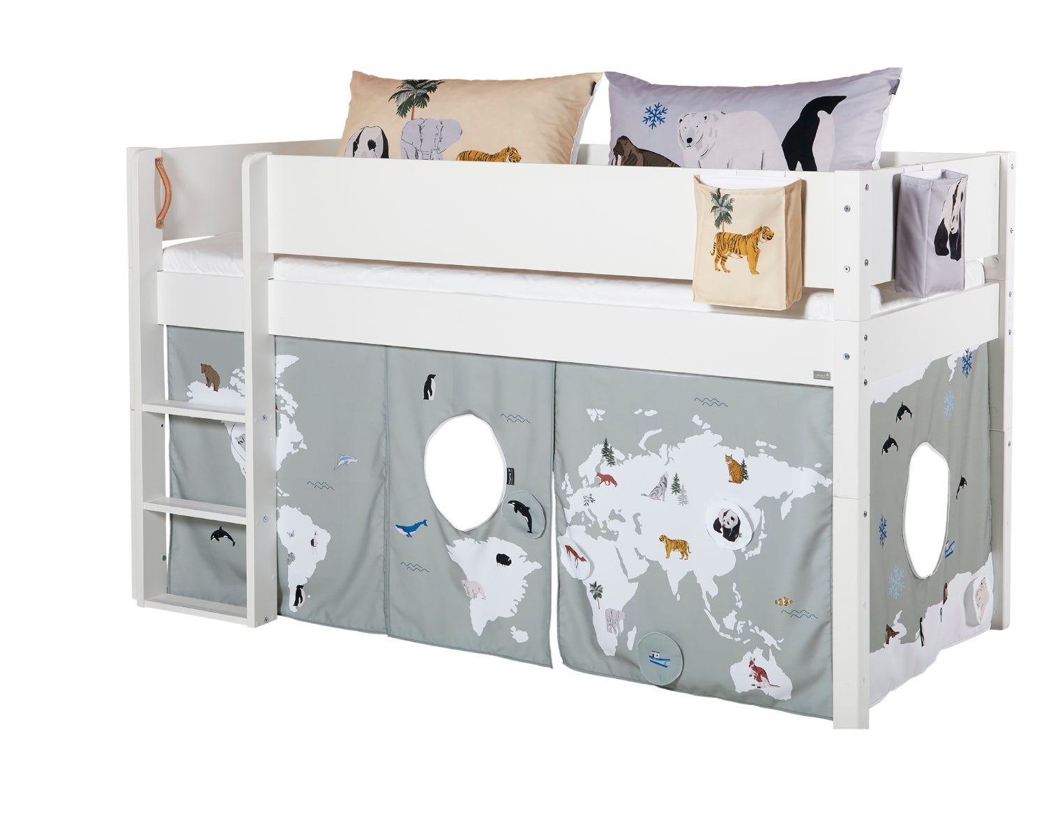 Frej er den perfekte halvhøje børneseng, hvor funktion og fantasi smelter sammen i en tryg og inspirerende ramme. Her kan dit barn sove roligt og sikkert om natten – omgivet af høje, beskyttende sengeheste i et design, du selv vælger – og vågne op til et helt univers af leg og hygge under sengen.