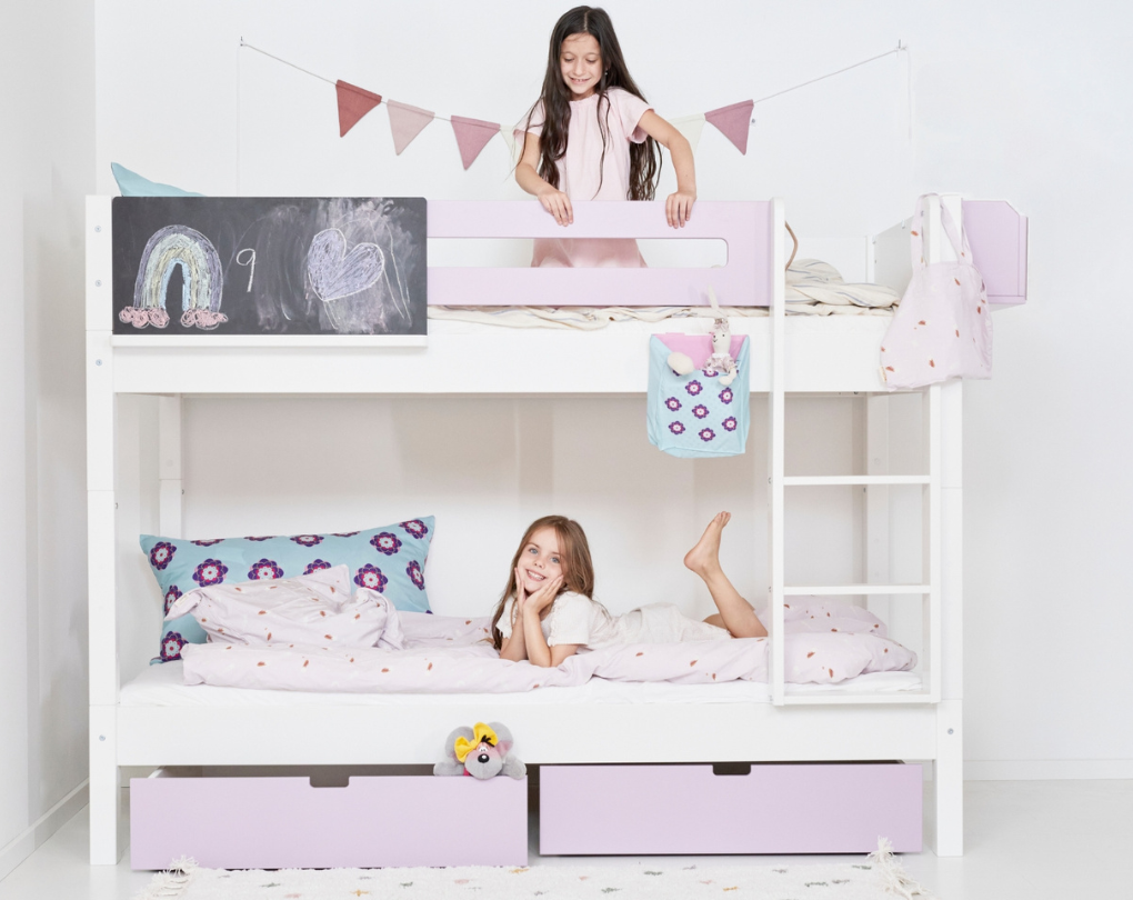Vælg mellem smukke farver, tilføj opbevaring, højde og sengeheste – skræddersyet til barnets ønsker og familiens indretning.
