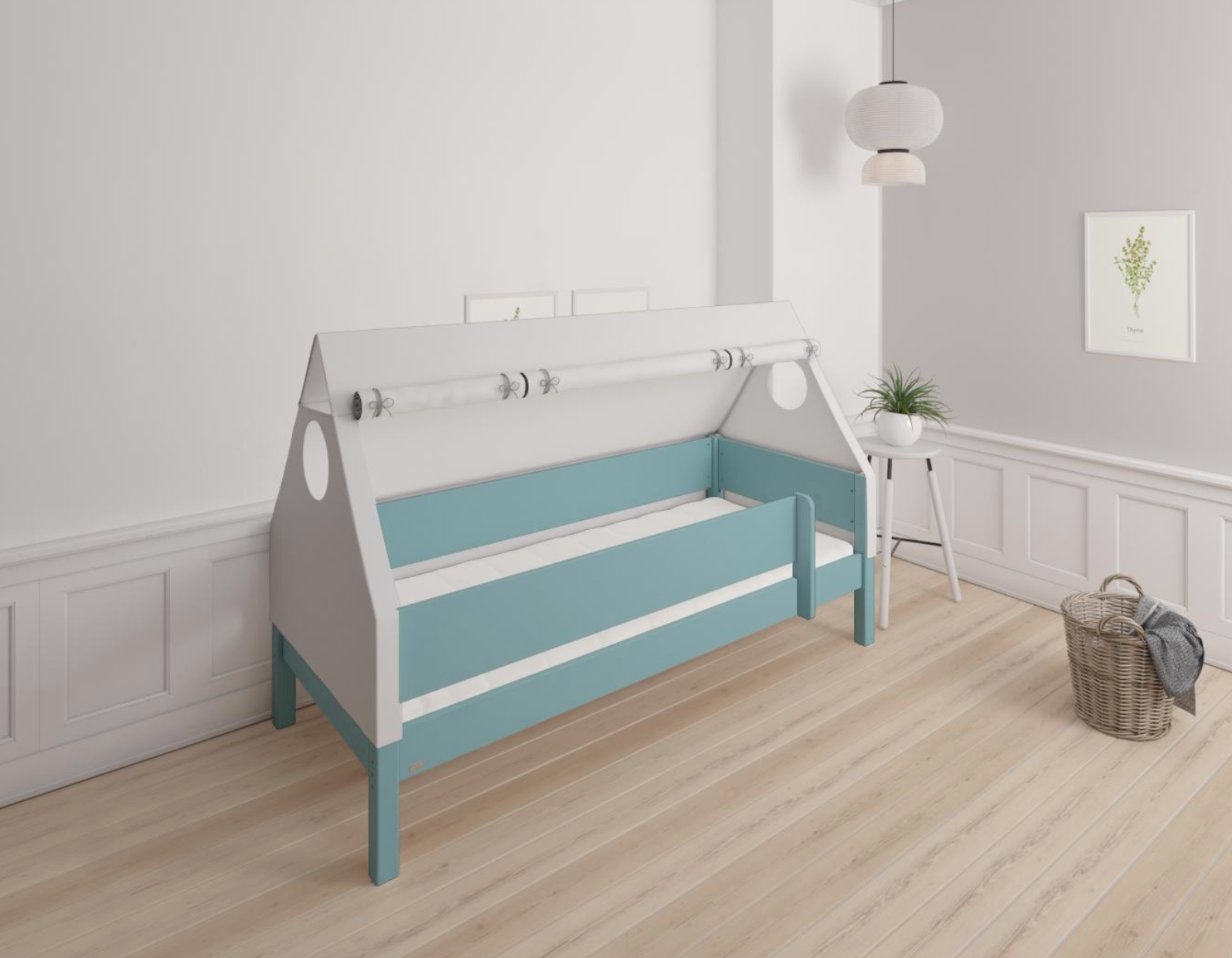 Fulla børne husseng med bøgestel og bomuldshimmel - 90*200cm - Petroleum - 40