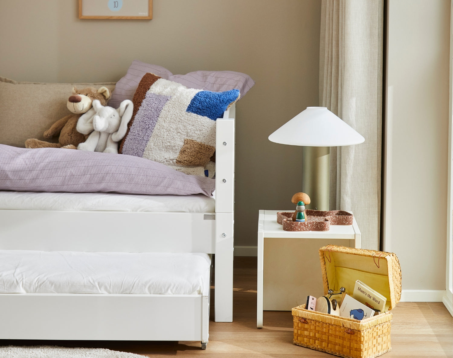 Vælg mellem smukke farver, tilføj opbevaring, højde og sengeheste – skræddersyet til barnets ønsker og familiens indretning.