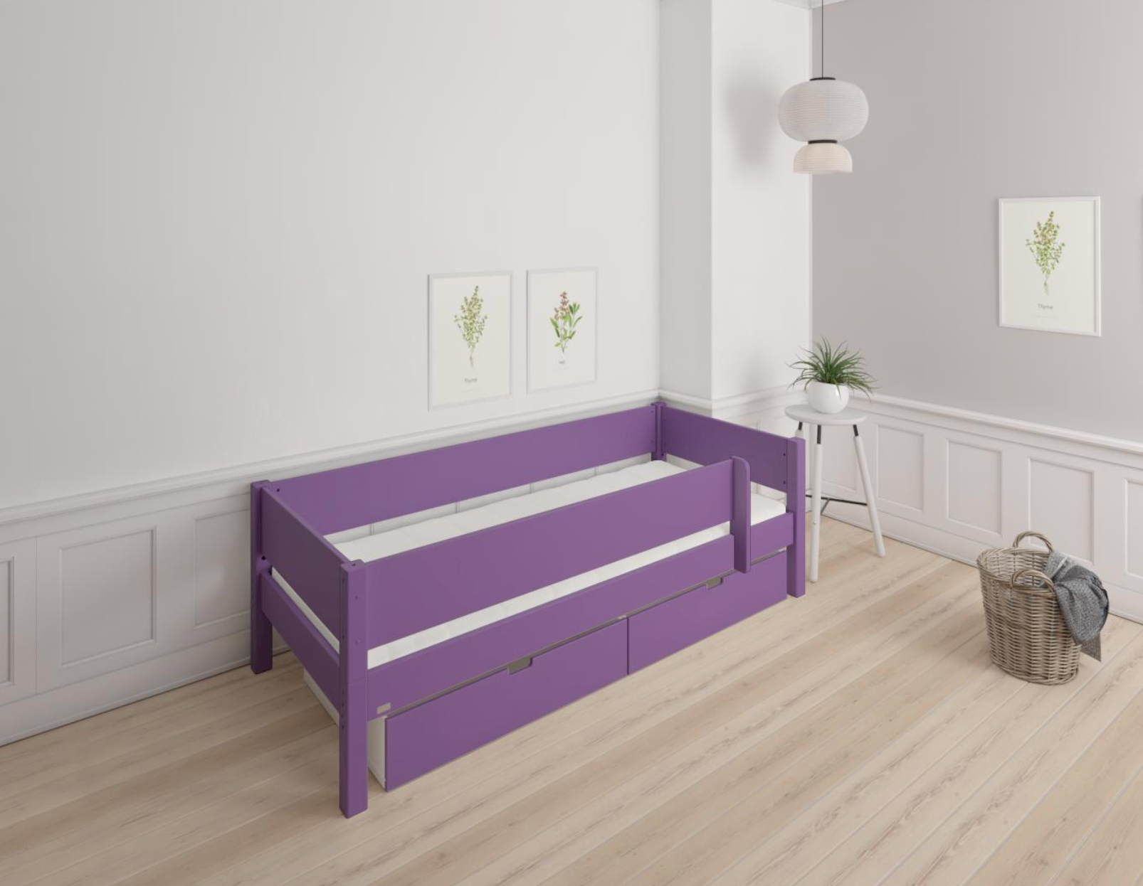 Mimer børneseng med sengehest og skuffer - 90*160cm - Purple - 31