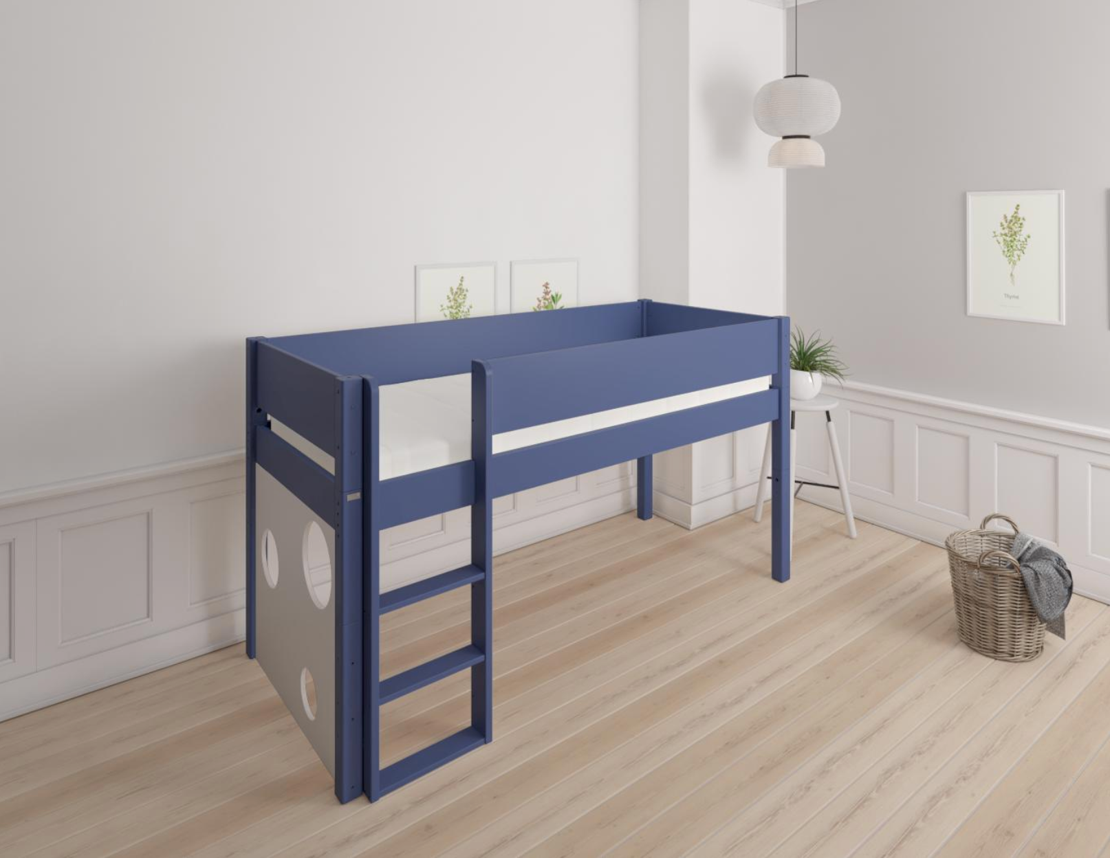 Sol halvhøj børneseng med boldtavle - height children's bed with ballboard - 90*160cm - Denim blue - 21