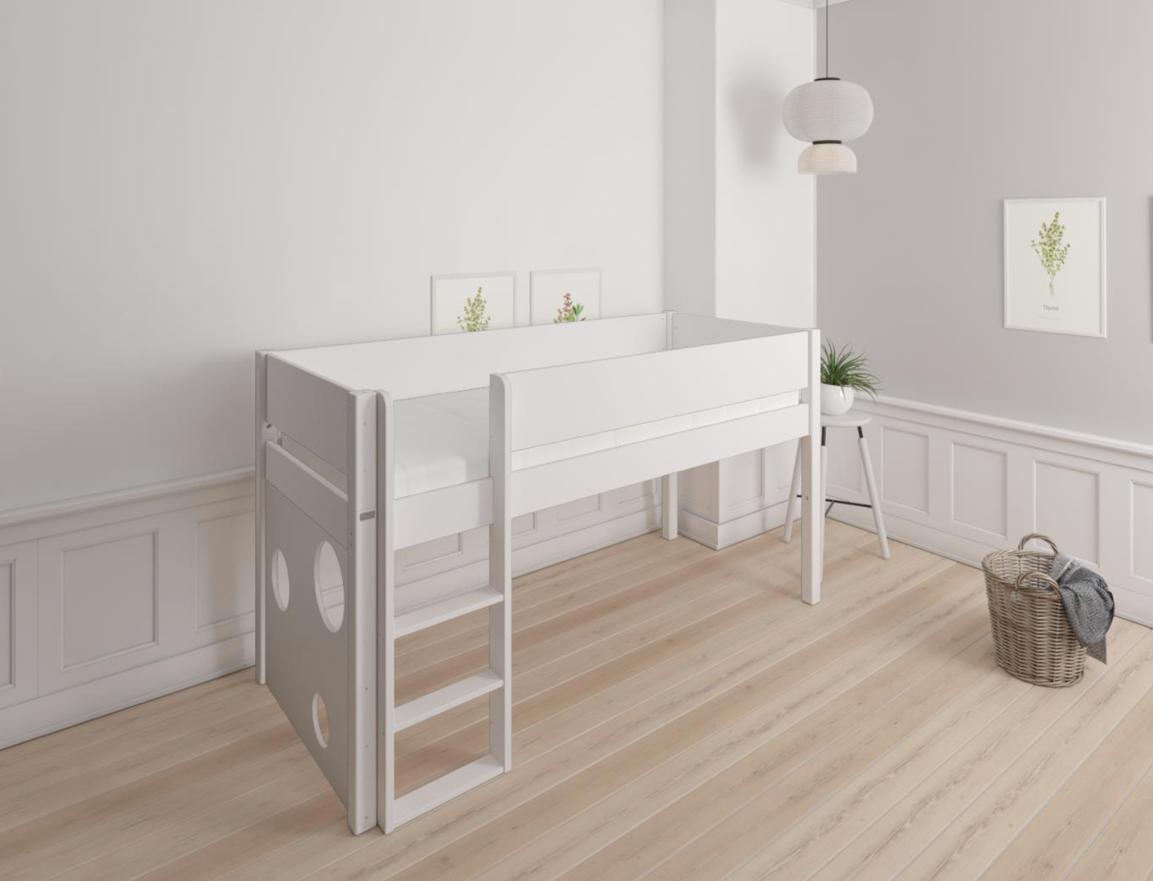 Sol halvhøj børneseng med boldtavle - height children's bed with ballboard - 90*160cm - White - 1