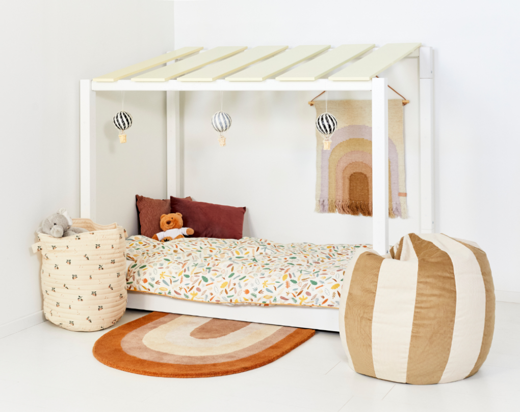 Forvandl din seng til en sjov Medusa-husseng! Vend sengen på hovedet, indsæt lamelbunden og sengen, og skab et hyggeligt hus til leg og fantasi.
